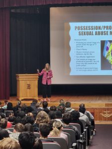 Marshall County District Attorney Jennifer Bray spoke to students at Boaz Middle School and Boaz High School today about the real-world dangers and responsibilities that come with cell phone use.