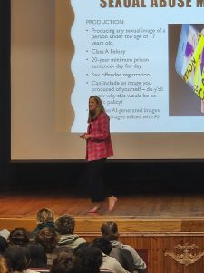 Marshall County District Attorney Jennifer Bray spoke to students at Boaz Middle School and Boaz High School today about the real-world dangers and responsibilities that come with cell phone use.