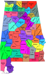 There are 41 judicial circuits that make up Alabama’s Circuit Court system. Each circuit includes one or more counties. Each circuit is represented by an elected District Attorney to represent the State of Alabama in criminal prosecutions and some specific civil matters.